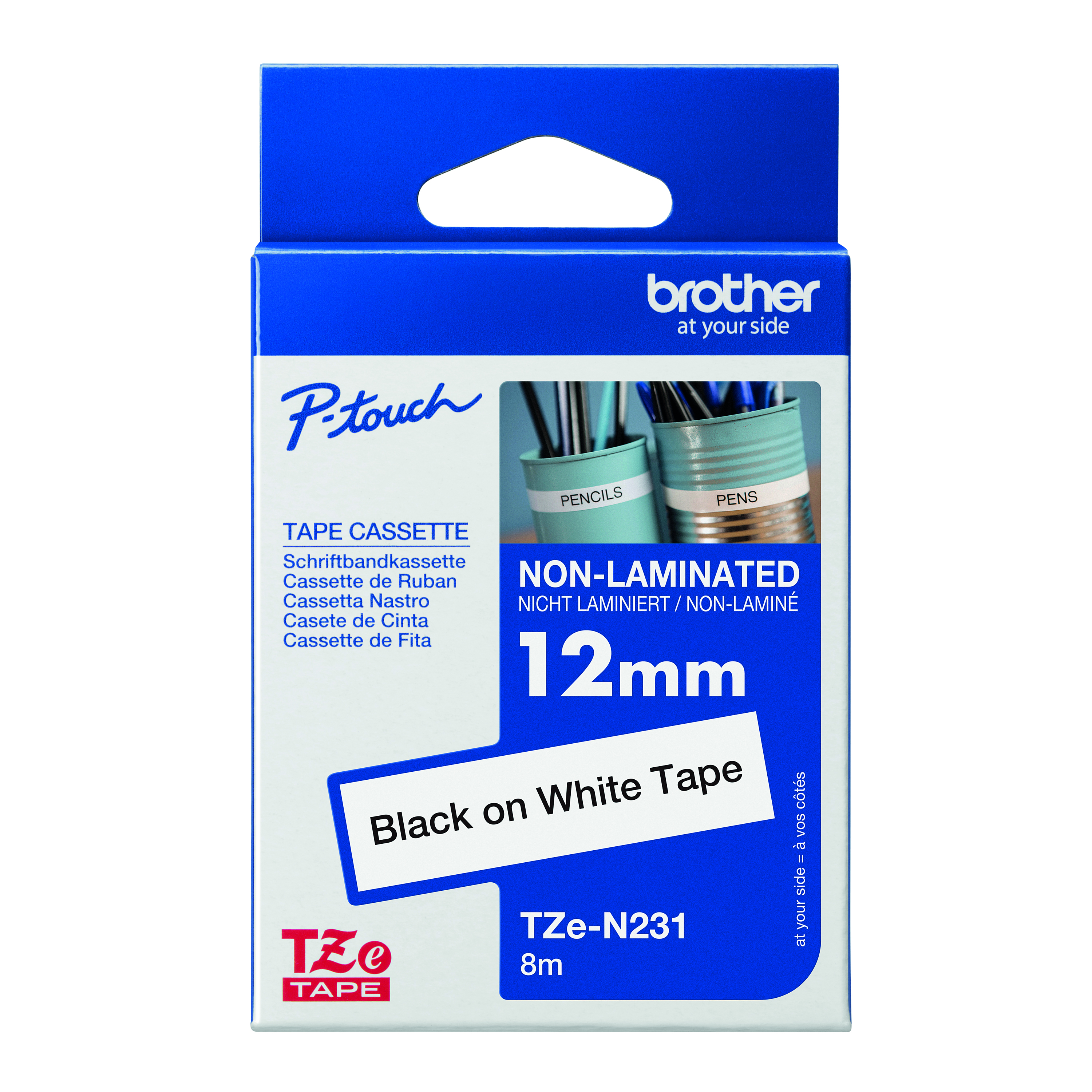 Brother P-Touch TZe Non-Lam Tape Cassette 12mm x 8m Black on White Tape TZEN231