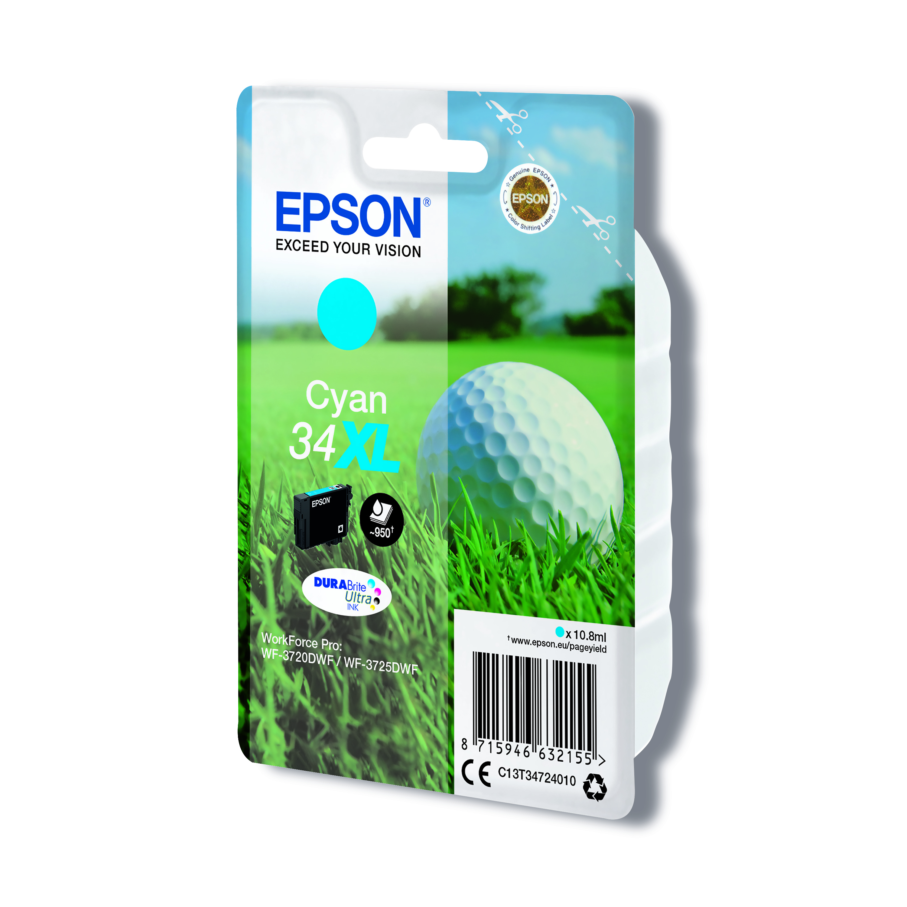 Epson 34XL Golf Ball DURABrite Ultra Ink Cartridge High Yield Cyan C13T34724010