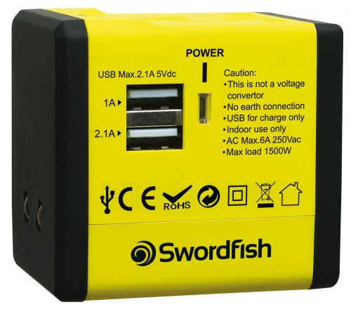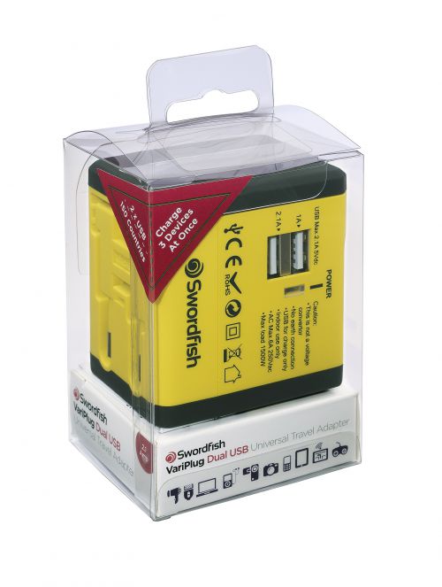 Swordfish VariPlug Dual USB Travel Adapter Yellow 40254