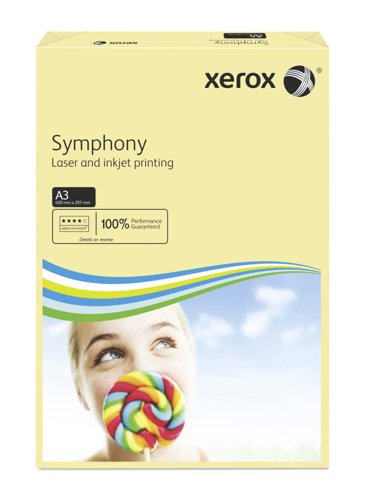 Xerox Symphony Pastel is a comprehensive range of coloured papers. The paper is manufactured to the same exacting standards as Xerox Premier paper. The clear wrap enables quick and easy colour recognition without opening the pack. Xerox Symphony paper is ideal for the colour coding of documents or when maximum impact is required. PEFC Certified.